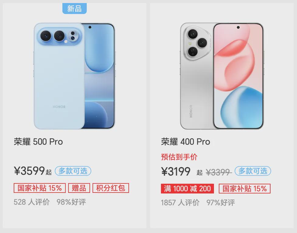 对比荣耀数字系列的两代产品,这种转向更为明显一些。去年 5 月发布的荣耀 400 系列尚存留着华为 P 系列设计的影子,到了年底的荣耀 500 系列,后置镜头模组则 180 度大转弯向 iPhone Air 的横条设计靠拢。